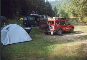 Wir wollten eigentlich wieder auf dem Campingplatz LAGUNA nächtigen, aber wegen Überfüllung kam nur noch Camping ALMATA in Frage. Zwar nicht ganz billig, aber Nobel. Da diesmal kein Stress aufkommen sollte, blieben wir direkt zwei Nächte zum Ausruhen. Nun war geplant erst mal 3-4 Wochen Abenteuer auf uns zu nehmen. Also, Karte raus (Michelin Nr. 443) und ein Pistenreicher Weg zum zweiten Camp in FORNOLS, ca. 36 km unter LA SEU d´Urgell abgesteckt. Die Piste war wirklich Beinhart, aber schön zu befahren.
