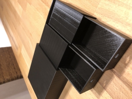 Der Außenkasten wird in dunklem Grau gehalten und der Auszug wurde Schneeweiß. Die beiden Schubladen habe ich nur mit klarer Lasur behandelt, da sie von der Maserung sehr schön aussehen. Sie sind auch nicht aus Pappelholz sondern aus AV-100